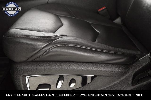 - Cadillac CUE Information and Media Control System with Embedded Navigation 8" diagonal color information display featuring touch response, haptic feedback, gesture recognition, Natural Voice Recognition and Phone Integration for Apple CarPlay capability for compatible phone. Five USB ports, including one in the articulating storage door/bin and auxiliary audio port